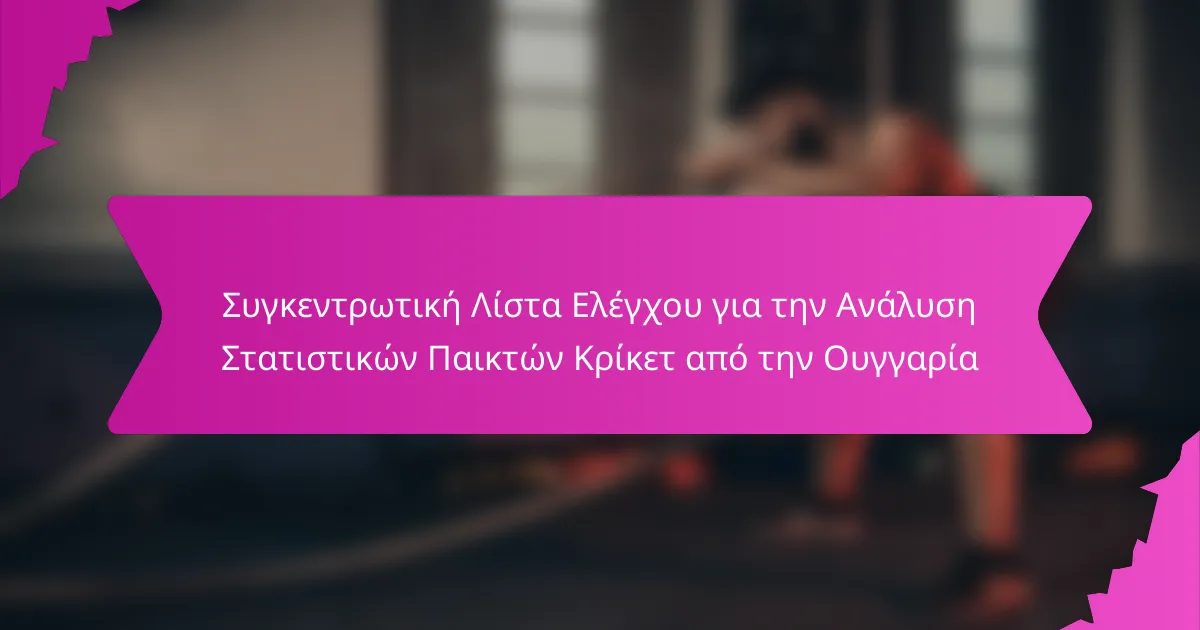 Η ανάλυση των στατιστικών των Ούγγρων παικτών κρίκετ απαιτεί μια ολοκληρωμένη προσέγγιση που εστιάζει σε βασικούς δείκτες απόδοσης. Εξετάζοντας τους μέσους όρους μπαταρίσματος, τους ρυθμούς οικονομίας των μπολέρ και τις κατατάξεις των παικτών, οι αναλυτές μπορούν να αποκτήσουν πολύτιρες πληροφορίες σχετικά με τις ατομικές συνεισφορές και τη συνολική δυναμική της ομάδας. Αυτή η λίστα ελέγχου χρησιμεύει ως οδηγός για την αποτελεσματική ερμηνεία τόσο των στατιστικών μπαταρίσματος όσο και των μπολέρ, εξασφαλίζοντας μια λεπτομερή αξιολόγηση της απόδοσης των παικτών.