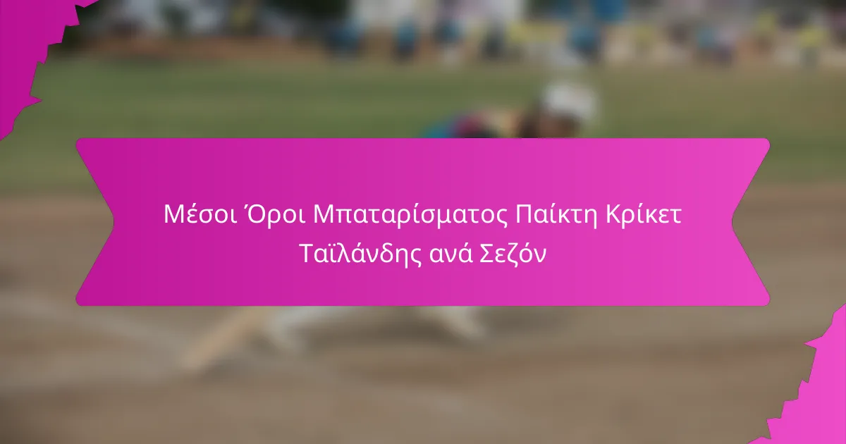 Οι μέσοι όροι χτυπημάτων των παικτών κρίκετ της Ταϊλάνδης κυμαίνονται ανάλογα με την εποχή, αναδεικνύοντας τάσεις στην ατομική και ομαδική απόδοση. Αυτοί οι μέσοι όροι, που προκύπτουν από το συνολικό αριθμό τρεξιμάτων που σημειώθηκαν διαιρεμένο με τον αριθμό των αποβολών, προσφέρουν πολύτιμες πληροφορίες σχετικά με τη συνέπεια και την αποτελεσματικότητα των παικτών. Ιδιαίτερα, οι παίκτες με τους υψηλότερους μέσους όρους επιδεικνύουν εξαιρετική ικανότητα σε διάφορες μορφές, συμπεριλαμβανομένων των ODIs, T20s και Test αγώνων, καθένας από τους οποίους παρουσιάζει ξεχωριστές προκλήσεις που επηρεάζουν τη συνολική τους συνεισφορά στην ομάδα.
